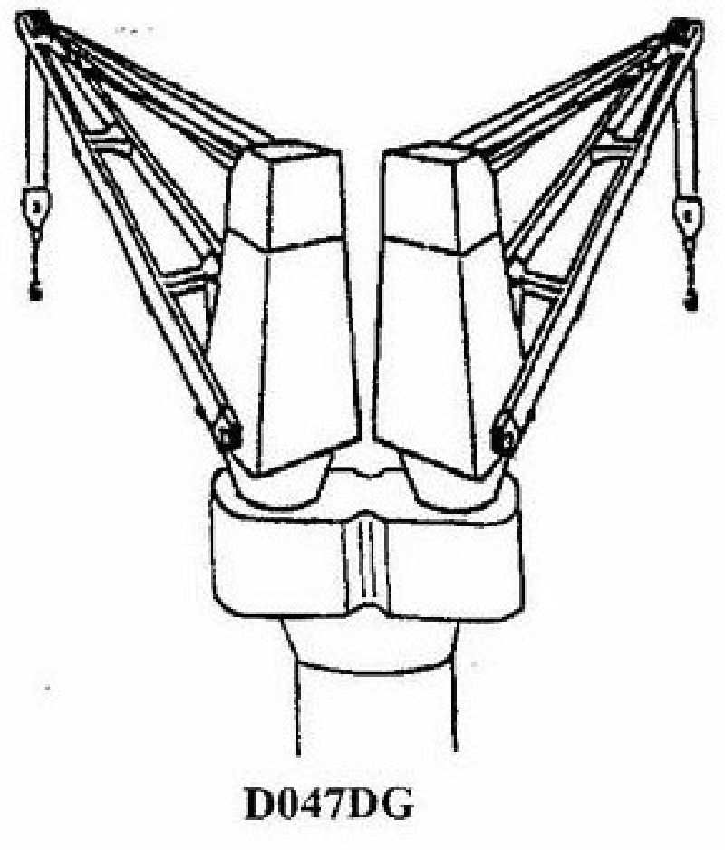 • Look at the entire structure shown, from the deck level up to the crane jibs, and think of it as a complete "set" rather than a single part.