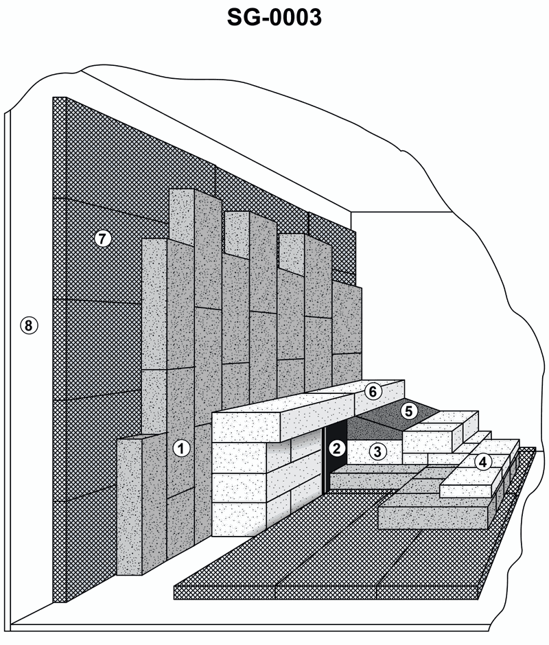 Which of the following labeled items of the illustrated section of boiler refractory represents the insulating block? Illustration SG-0003