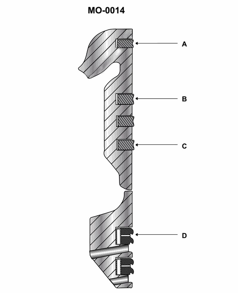 Which of the lettered items, shown in the illustration, identifies an oil control ring? See illustration MO-0014.