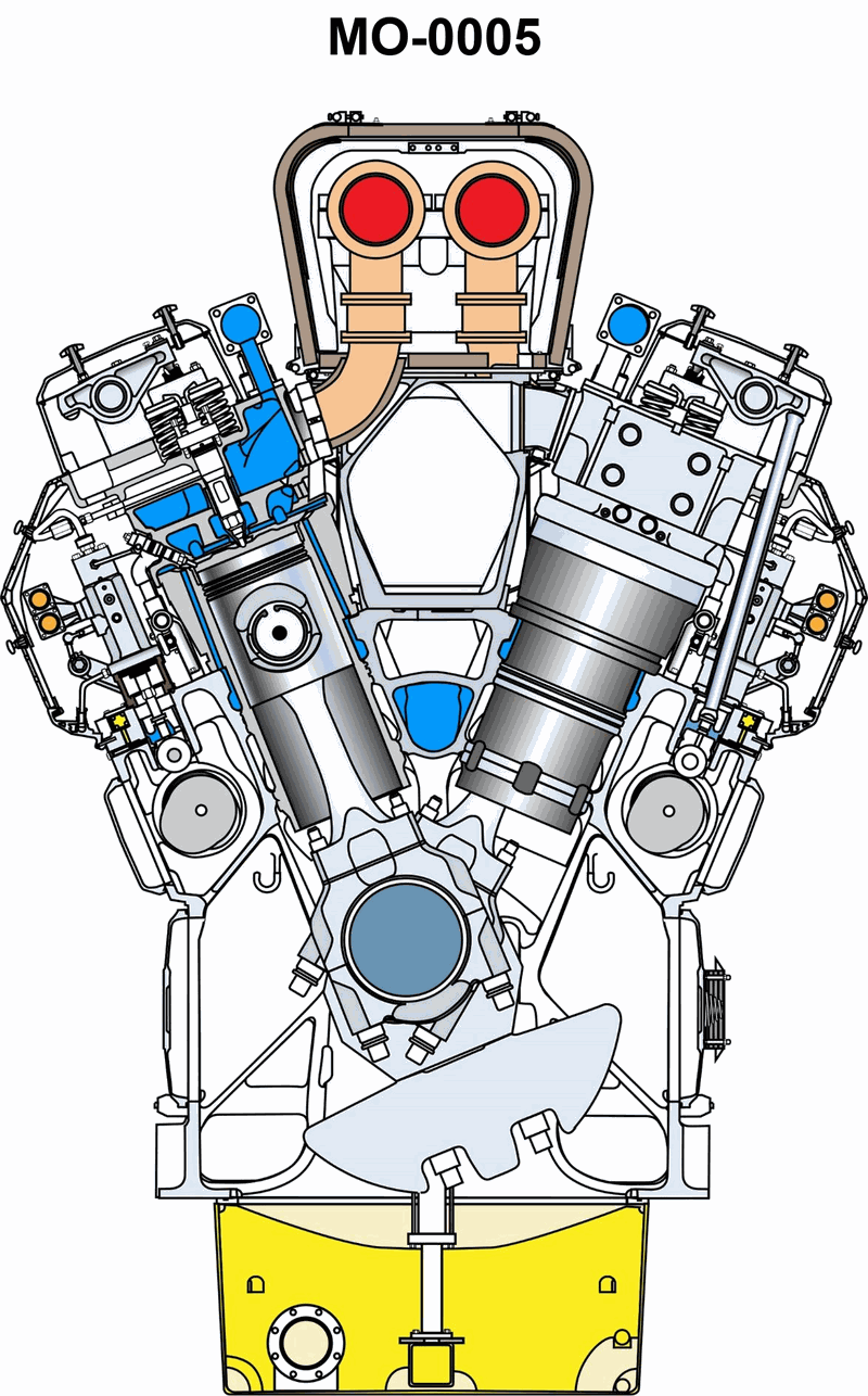 Which of the listed construction characteristics is apparent of the diesel engine shown in the illustration? See illustration MO-0005.