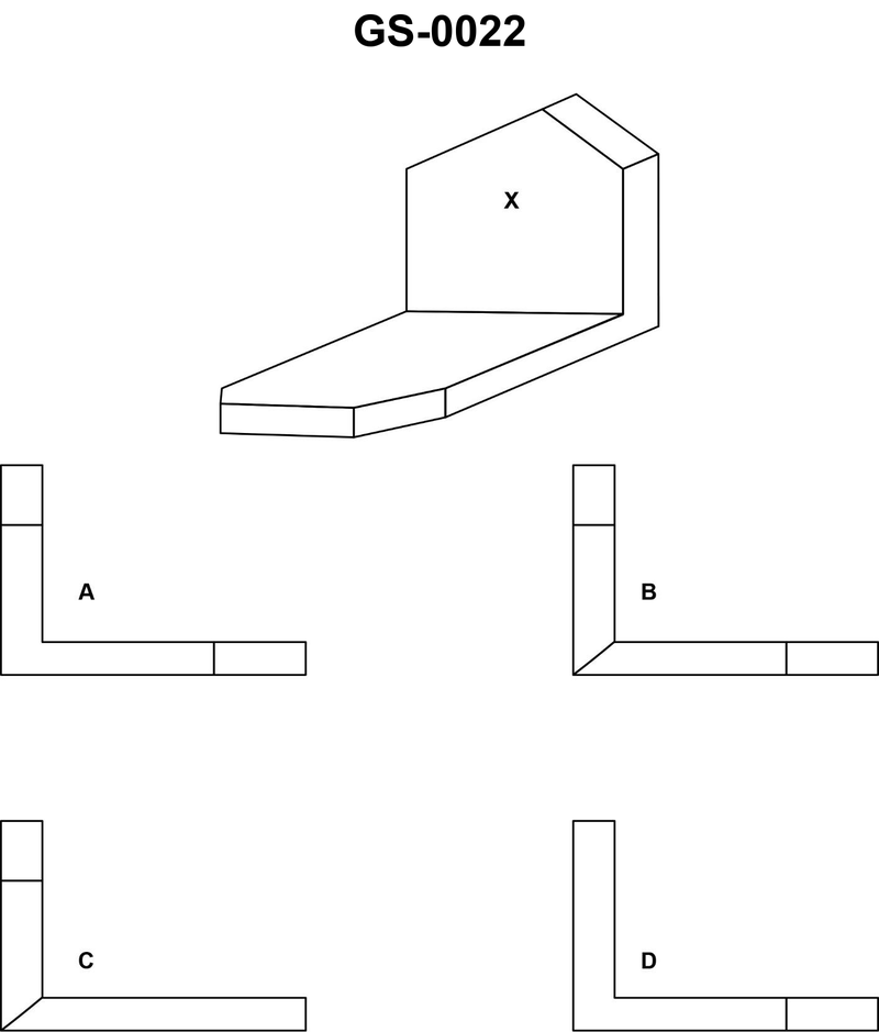 Which of the projections represents the left side view of the object "X" in the illustration? Illustration GS-0022
