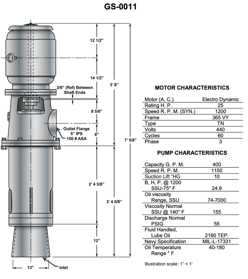 Which of the speeds listed represents the synchronous speed rating of the lube oil pump motor shown in the illustration? Illustration GS-0011