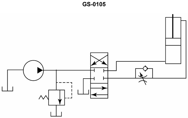• Center position of a 4-way, 3-position directional control valve – does it block, connect, or unload the pump and actuator ports?