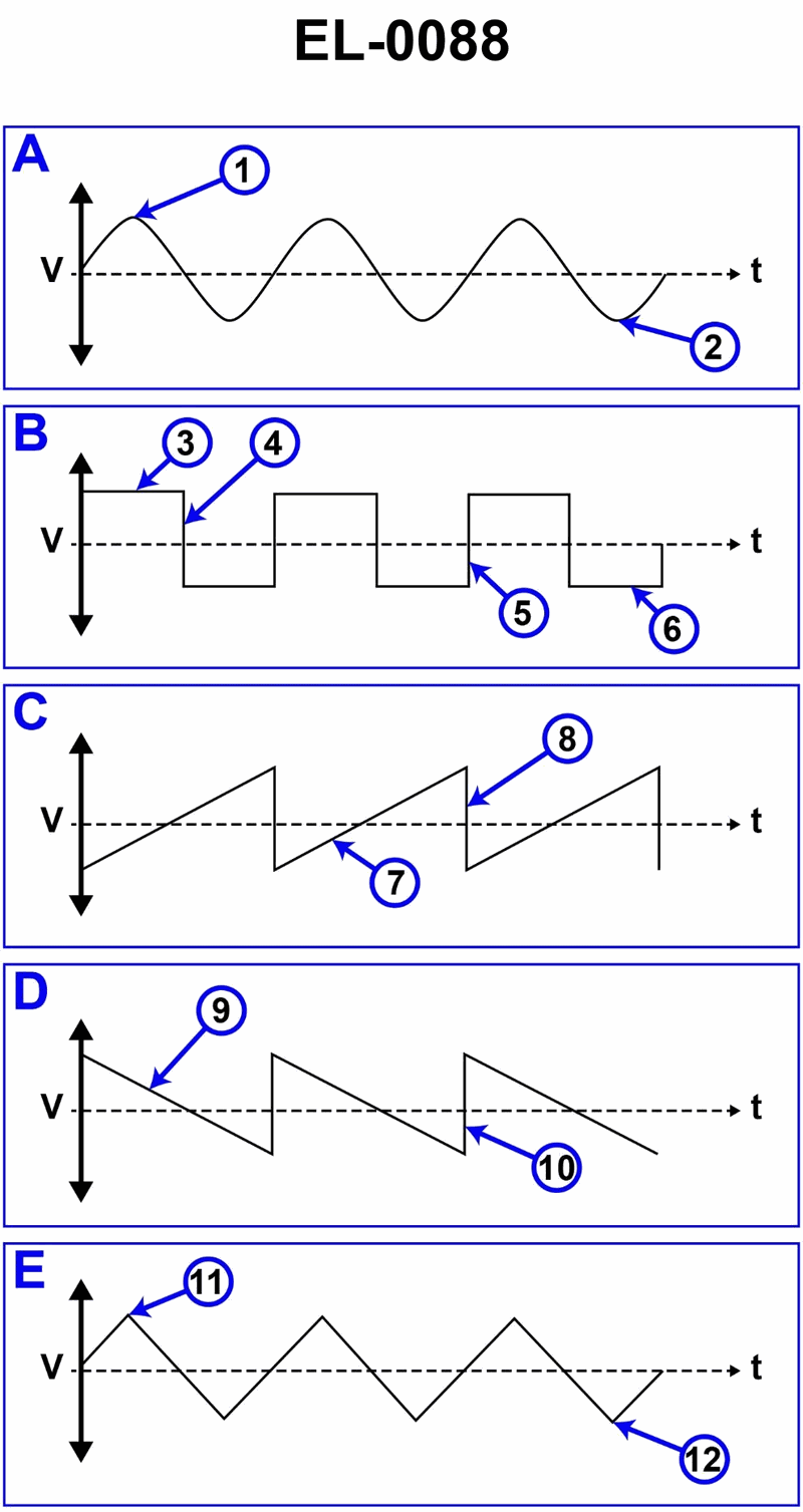 Which of the wave shapes shown in the illustration is termed a sinusoidal wave? Illustration EL-0088