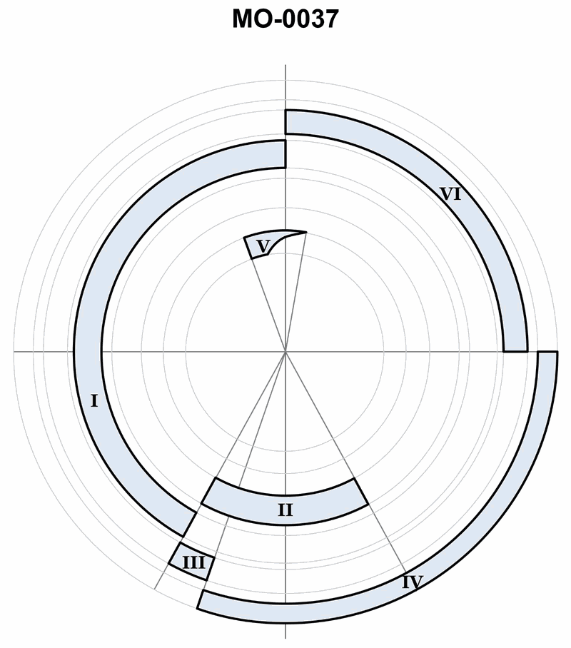 Which segment of the two-stroke cycle engine diagram shown in the illustration represents 'supercharging'? Illustration MO-0037
