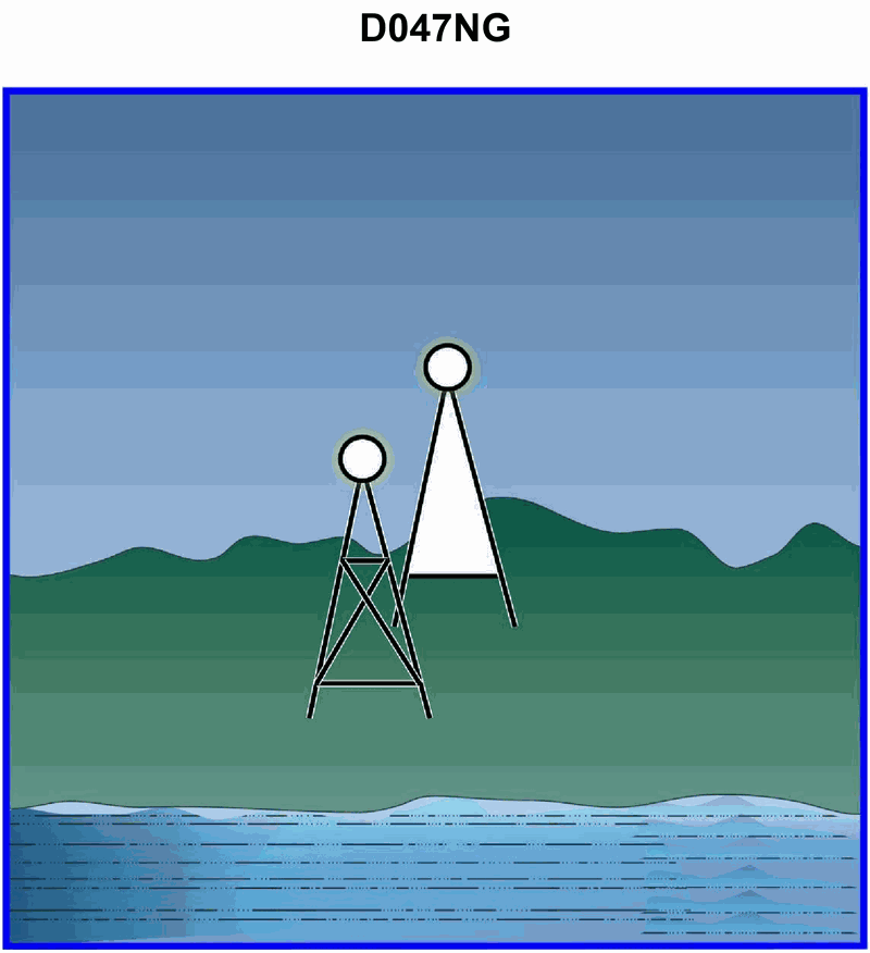 You are inbound in a channel marked by a range. The range line is 309°T. You are steering 306°T and have the range in sight as shown in illustration D047NG below. The range continues to open. What action should you take?
