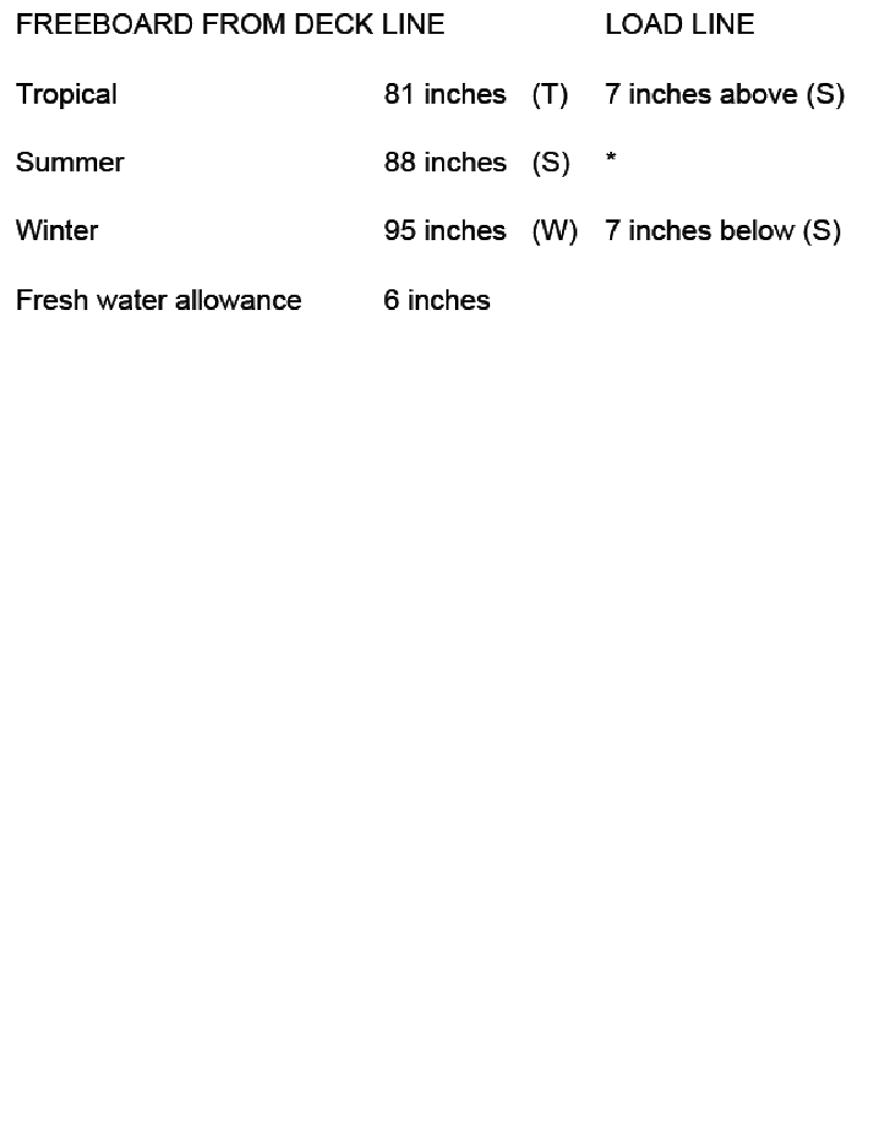 You are loading in a port subject to the tropical load line mark and bound for a port subject to the winter load line mark. You will enter the summer zone after steaming one day, and you will enter the winter zone after a total of eleven days. You will consume 33 tons of fuel, water, and stores per day. The hydrometer reading at the loading pier is 1.004, and the average TPI is 46. What is the minimum freeboard required at the start of the voyage? Reference Table BL-0011 below.