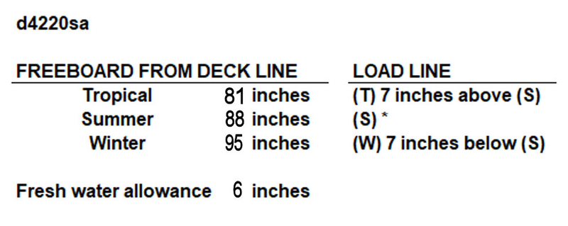 You are loading in a port subject to the winter load line mark and bound for a port subject to the tropical load line mark. You will enter the summer zone after steaming four days, and you will enter the tropical zone after twelve days. You will consume 38 tons of fuel, water, and stores per day. The hydrometer reading at the loading pier is 1.004, and the average TPI is 72. What is the minimum freeboard required at the start of the voyage?