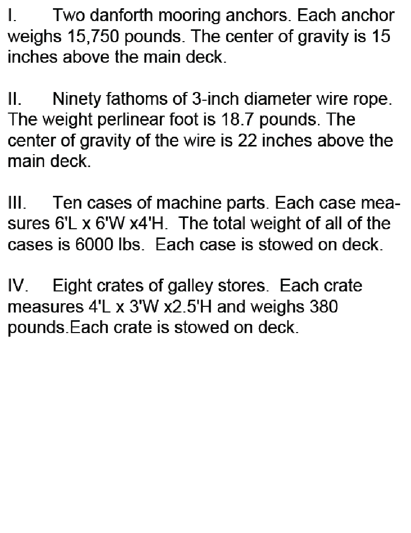 You are on a supply run to an offshore drilling rig. You are carrying the load show in table ST-0019 below. What is the height above the main deck of the center of gravity of the cargo?