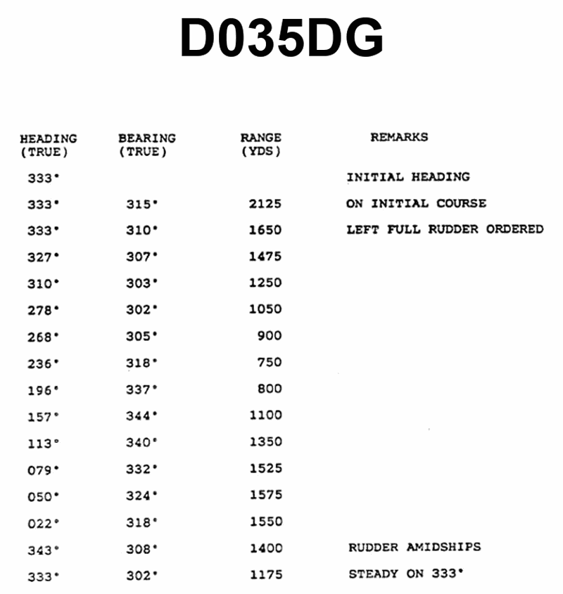 You have determined the maneuvering characteristics of your vessel by taking the radar ranges and bearings of an isolated light while making a turn. The results are shown in illustration D035DG below. What is the transfer for a turn of 180°?