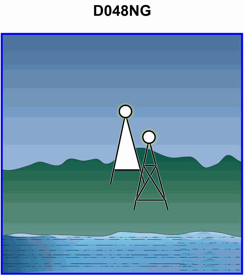 Your vessel has changed course and is heading 285°T, you are on the charted range and it appears as in illustration D048NG below. After several minutes the range appears as in illustration D047NG below and your heading is still 285°T. What does this indicate?