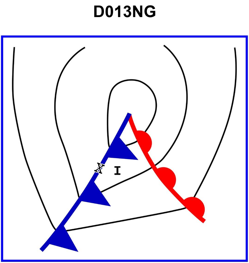 Your vessel is located at position I on the weather map in illustration D013NG below. You should experience which weather condition?